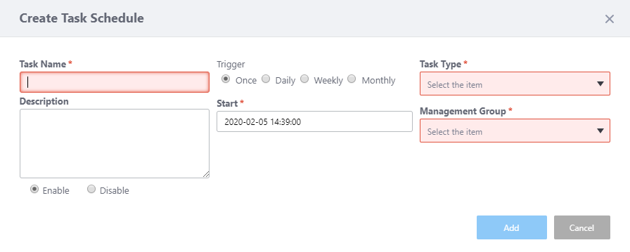 Refer to Operation Reference > Miscellaneous Settings > Manage Task Scheduling for more details on additional configuration elements.