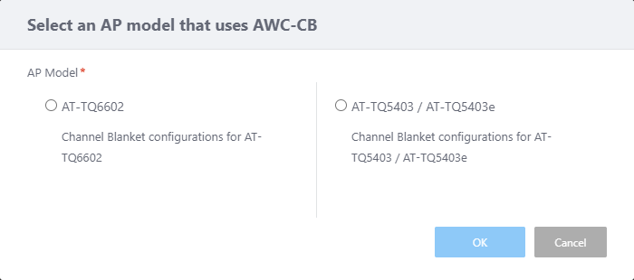 - The "Select an AP model that uses AWC-CB" dialog box will appear.