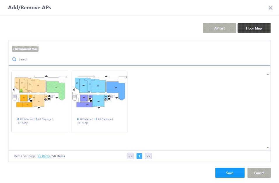 APs placed on the "1F Map" will be displayed as icons on the map.