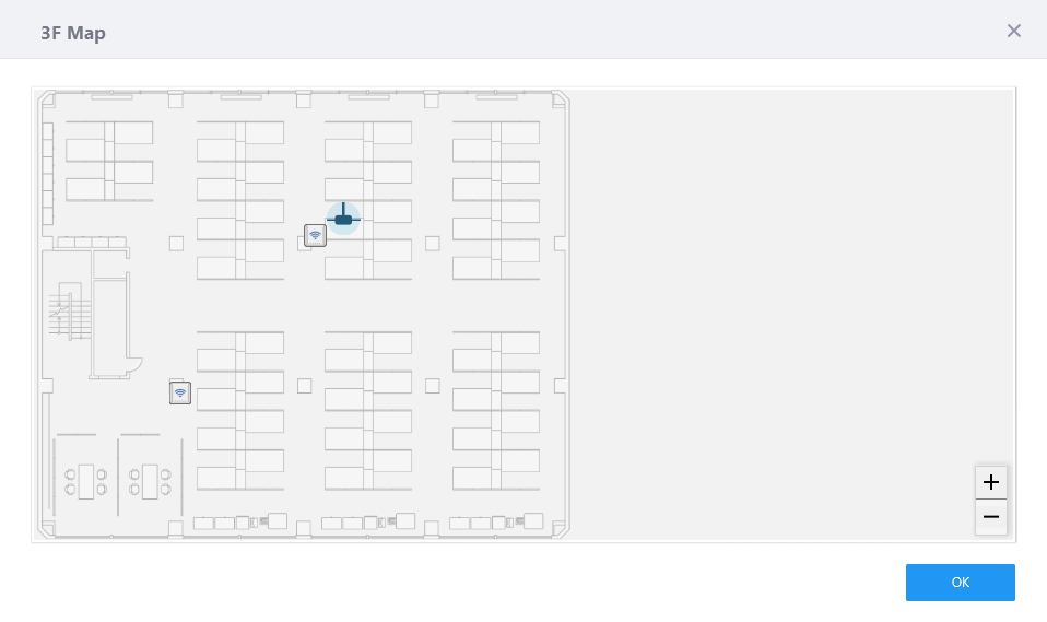 Click the "Floor Map" at the top right of the "AP List" to display floor map panels belonging to the management group. Click the floor map panel to display the Floor Map dialog, APs on the map are shown graphically.