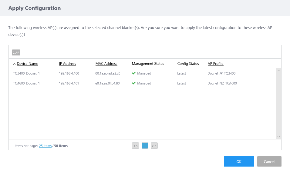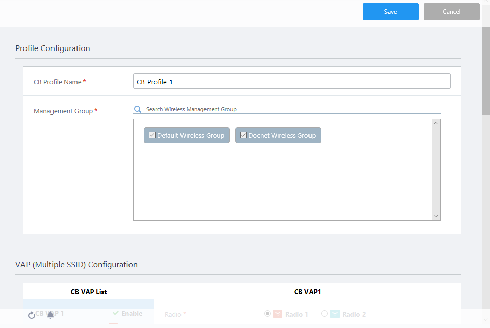 To apply a CB Profile to APs, the APs should have an AP Profile applied and should be in "Managed" state.If an AP Profile has not been applied to the APs, refer to Operation Reference > Wireless Configuration > Manage AP Registration and Operation Reference > Wireless Configuration > Change Management Group or AP Profile for AP and apply an AP Profile to them.