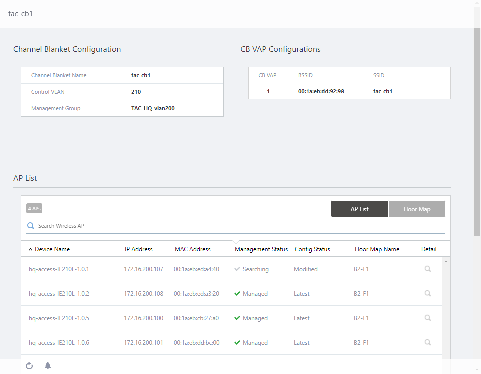 To make a channel blanket operational, you have to apply a CB Profile to member APs.Apply CB Profile to Factory Default AP