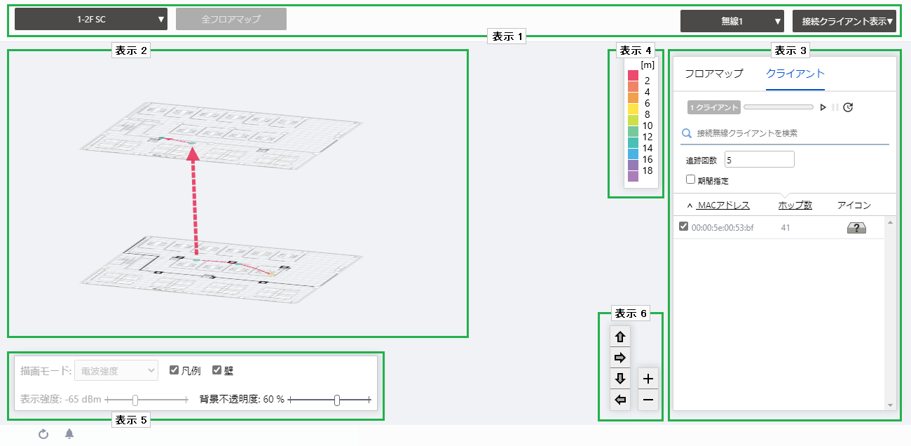 | Wall | If walls have been created on the floor map (using the Edit Wall page), this lets you choose whether to display the walls. |