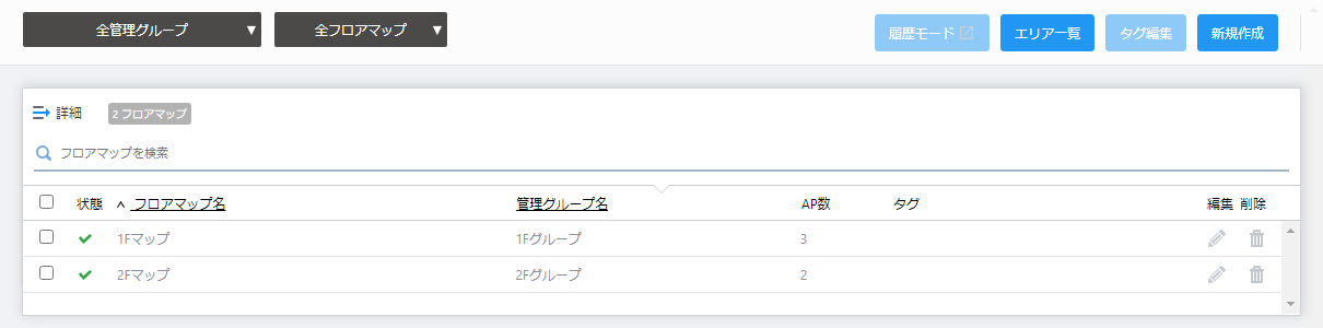 | Checkbox | To edit tags for floor maps, use the checkbox to select the maps and click this button. |