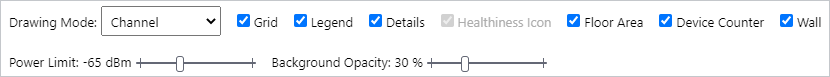| Drawing Mode | Lets you select what to show on the heatmap. Options are power (signal strength) and channel. |