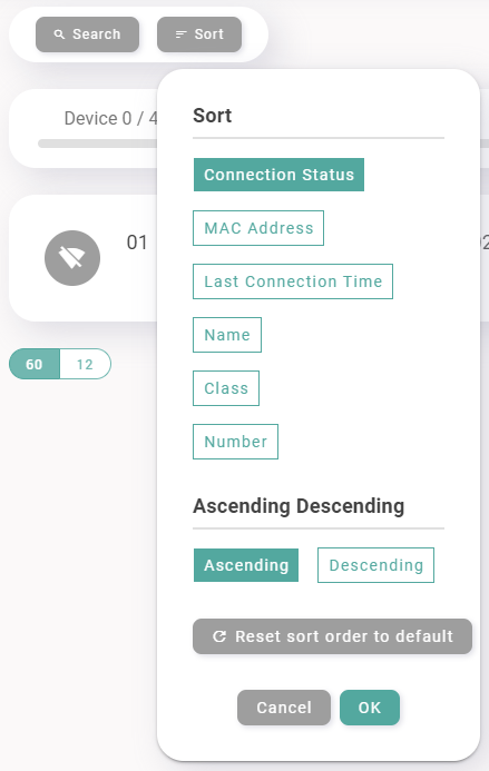 | Items per page | You can select "60" or "12" for the number of devices to be displayed on one page. The default is "12". |