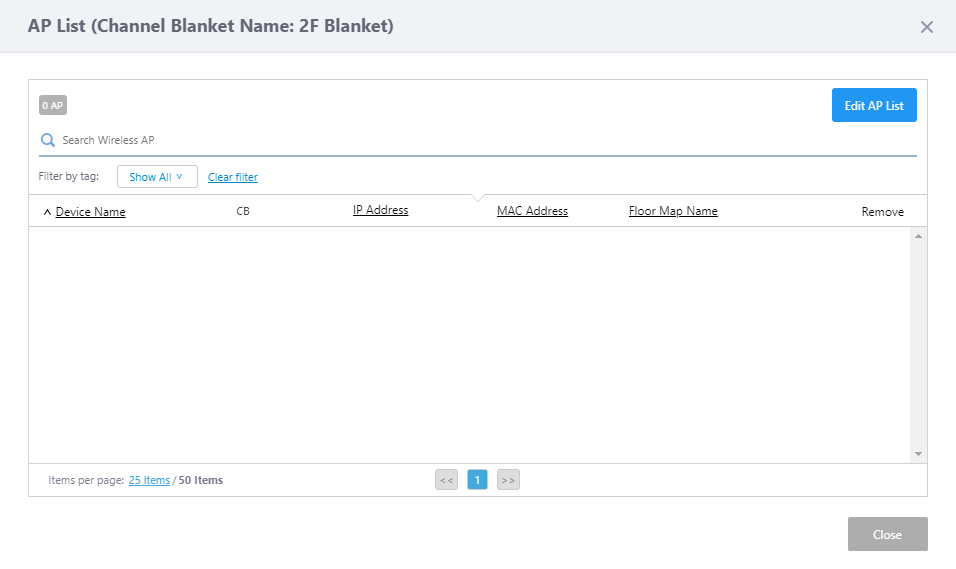 In the title, the channel blanket name follows "AP List", in brackets. In this case, the title is "AP List (Channel Blanket Name: 1F Blanket)".