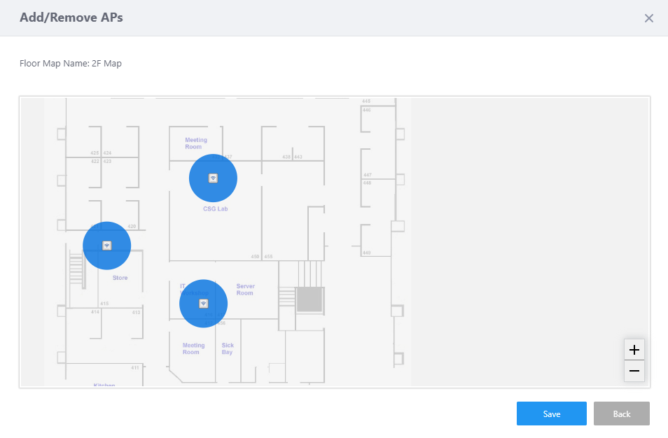 APs placed on the "2F Map" will be displayed as icons on the map.