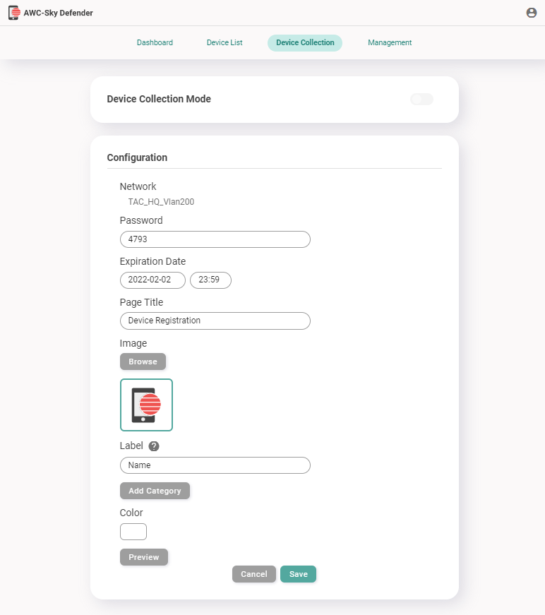 - Activate "Device Collection Mode" at the top of the "Device Collection" screen, and share the Device Registration page and the Password set in Step 2 with the users.