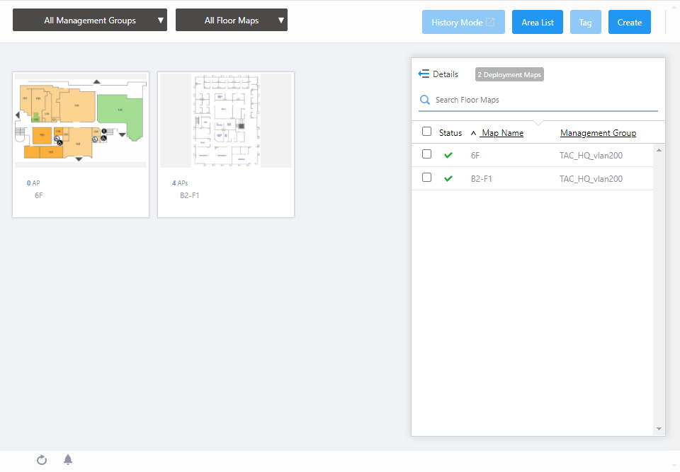 | Details | You can click to see the information such as the number of Deployed APs, and Tags, in addition to the default items of Status, Floor Map Name, and Management Group Name. Floor Map Panel will not be displayed in the extended state of Floor Map List. Clicking Details again returns you to the default non-detailed view. |