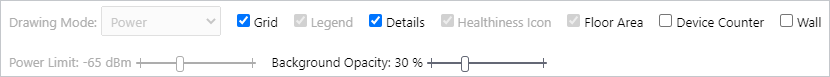 | Drawing Mode | Lets you select what to show on the heatmap. Options are power (signal strength) and channel. |