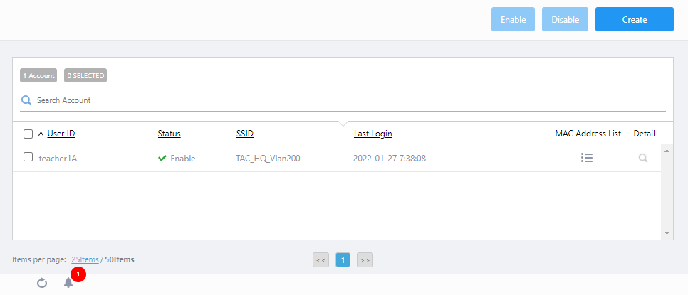 | "Enable" button | Enables the account. This is visible only when the account status is "Disable". |
