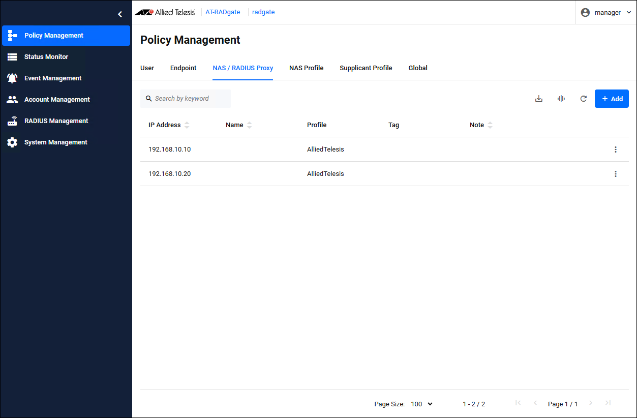 - Register the NAS Profile policy on the AT-RADgate Policy Management page