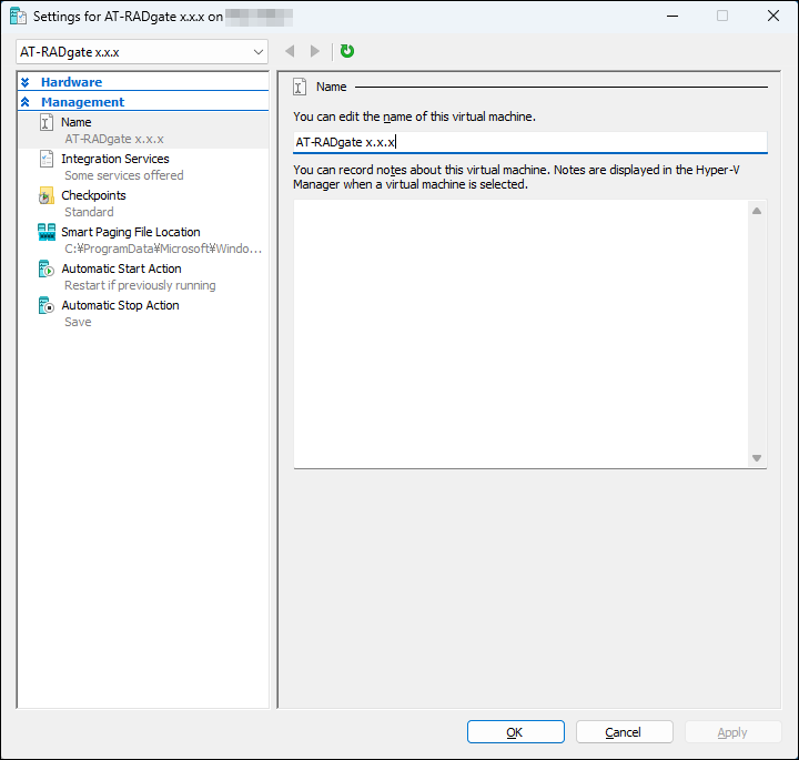 Change the virtual machine settings in Hyper-V Manager.- Launch "Hyper-V Manager" from the Start menu, etc.