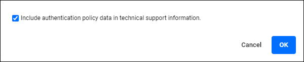 | "Tech Support" button | A file for technical support is output. This is intended for cases where checking internal information is required, such as for troubleshooting, so consult our technical staff before using it. By default, the technical support information also includes authentication policy data. If you do not want to attach policy data, uncheck "Include authentication policy data in technical support information." in the dialog that appears after clicking the "Technical Support" button.