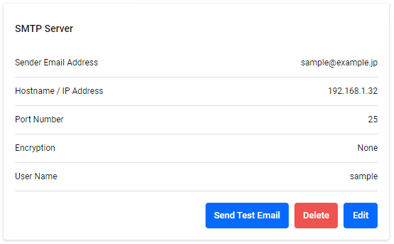 | "Delete" button | − | − | Deletes the currently registered SMTP Server settings. |
