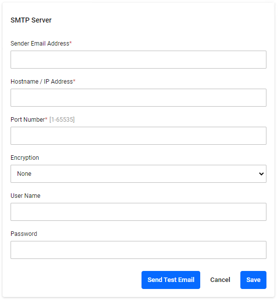 | Sender Email Address | × | Email Address | This is the sender Email Address for emails sent using this SMTP Server. |