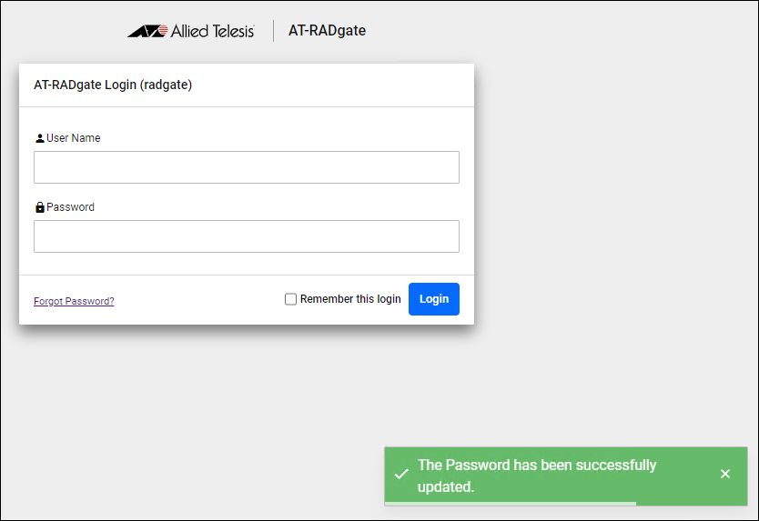 If you forget your login details for AT-RADgate, and an SMTP Server is registered with AT-RADgate, you can recover your login details using the Email Address associated with your account.