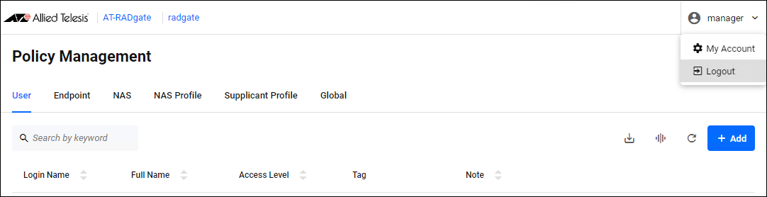 Once you have finished all the settings, click "manager" (or the logged-in user name) in the upper right corner of the page, and click "Logout."
