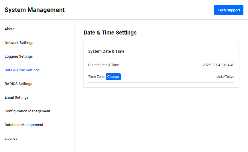 | Time Zone | Displays the current Time Zone in the format "Region/Time Zone". Clicking the "Change" button displays the Time Zone dialog, allowing you to change the Time Zone. |