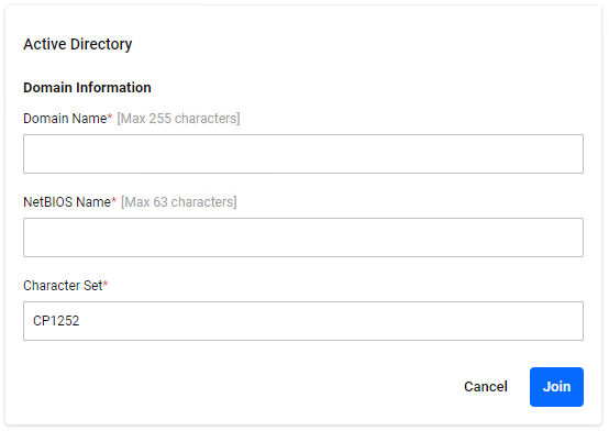 | "Join" button | − | − | Save your edits and join the Active Directory domain. |