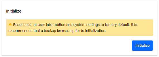 Resets the administrator account information and system settings to the factory defaults.