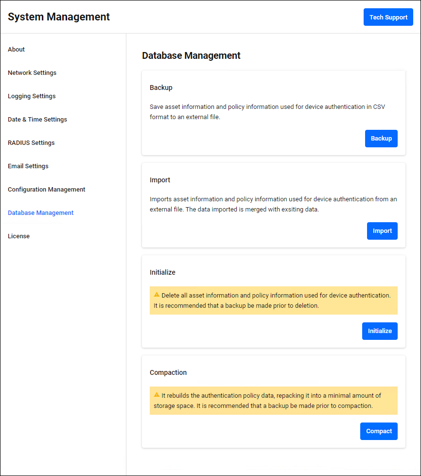 - Software License (System Management > License page)