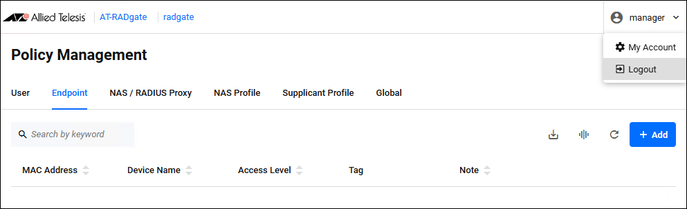 Once you have finished all the settings, click "manager" (or the logged-in user name) in the upper right corner of the page, and click "Logout."