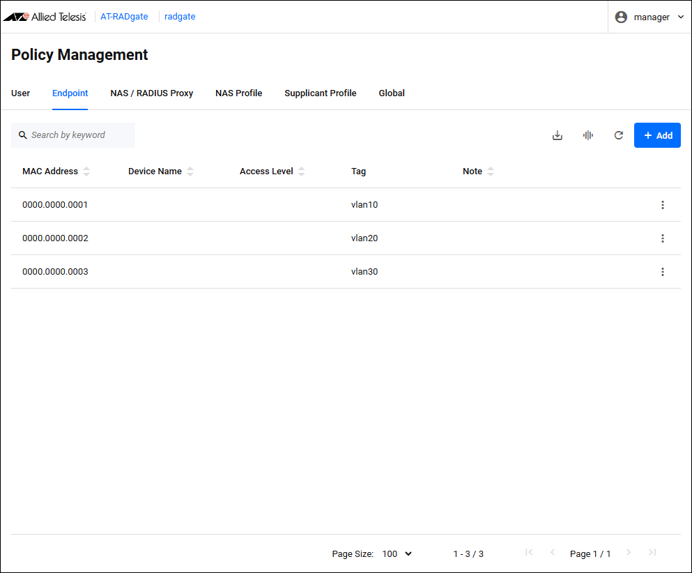 Policy Management > EndpointManages AT-RADgate Endpoint policies.