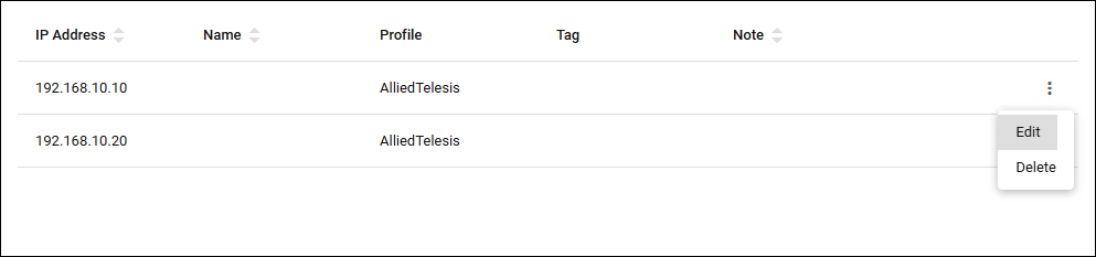 | Tag | × | × | − | A list of tags assigned to the device. Used to categorize devices into specific groups. |