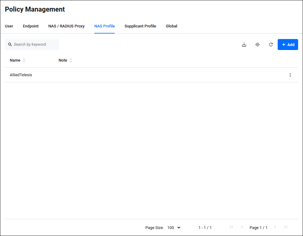 Policy Management > NAS ProfileManages AT-RADgate's NAS Profile policies.
