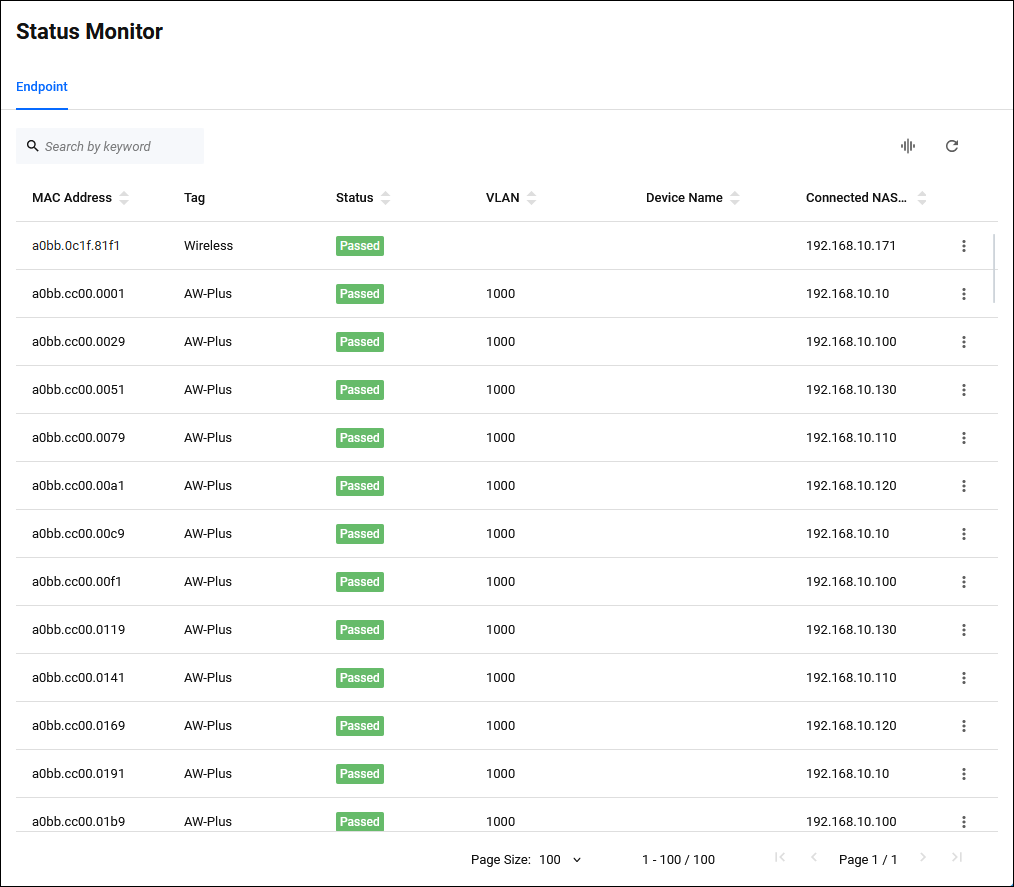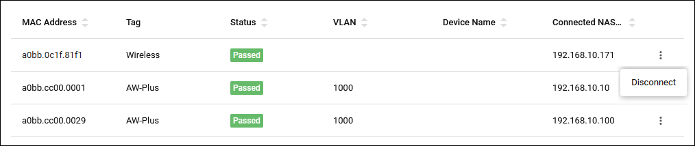 - Only devices that have been authenticated via a NAS that has been assigned a "NAS Profile" with endpoint authentication enabled is displayed.