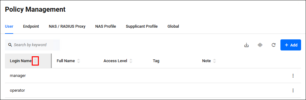 - Policy Management > User