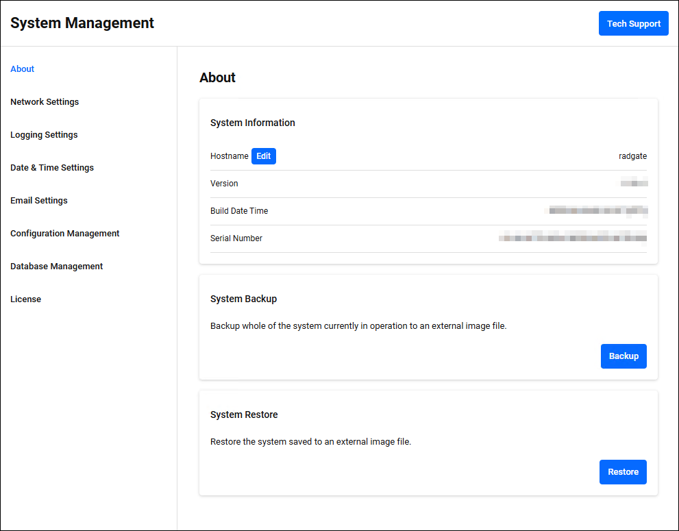 System Management > AboutOn the "About" page, you can view system information, change the Hostname, and backup and restore your system.