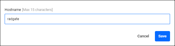 | Hostname | × | String (Max 15 characters) | The Hostname of the node on which this system is running. Only lowercase alphanumeric characters and hyphens are allowed (hyphens cannot start or end the name). If you save without entering anything, the default Hostname (radgate) is set. |