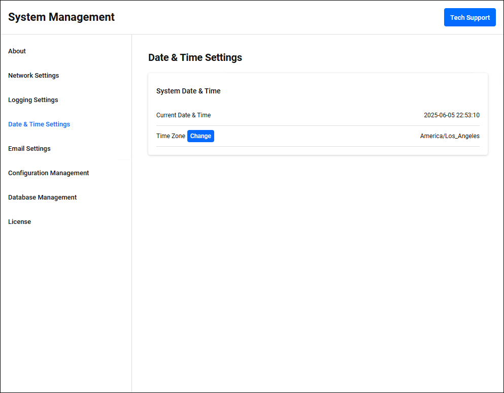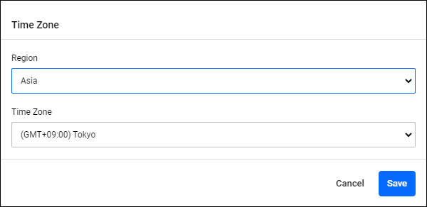 | Time Zone | Displays the current Time Zone in the format "Region/Time Zone". Clicking the "Change" button displays the Time Zone dialog, allowing you to change the Time Zone. |