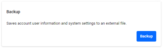System Management > Configuration Management > BackupSaves administrator account information and system settings to an external file. Because the backup file does not contain information such as authentication policy data, it is not possible to completely restore the entire running system from this backup file.