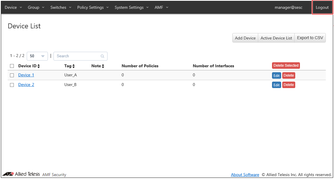 When you finished configurations, click "Logout" at the top right corner of the screen.