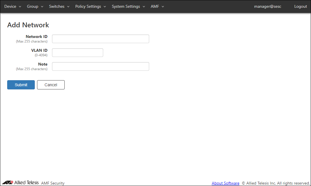 Add a new location where the OpenFlow Switch and the AMF Member are installed.Location can be added on the Policy Settings > Add Location page.