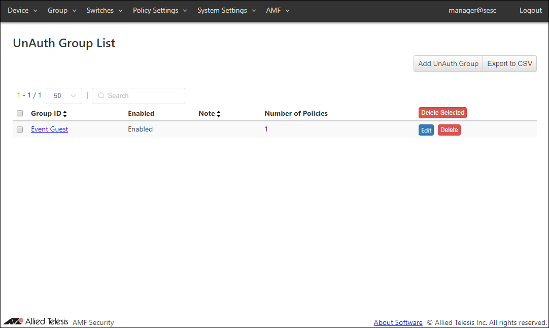 - Open the Group > UnAuth Group List page.