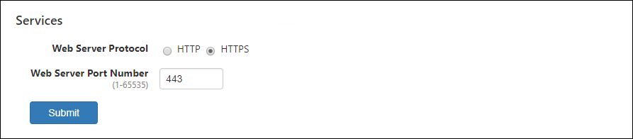 | Web Server Protocol | Protocol (HTTP or HTTPS) to use for the web interface. Default is HTTPS. |