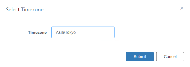 - The Select Timezone dialog is displayed. Select the "Asia/Tokyo" from the drop-down list and click the "Submit" button.