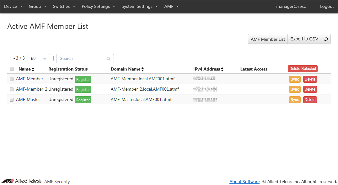 NoteSince the name of the AMF Member cannot be registered twice, make sure that the host name of the AMF Member is also unique.