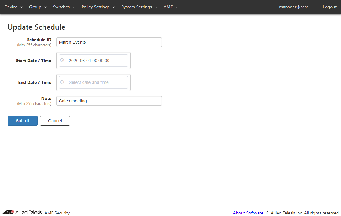 | Submit | Update the schedule. |