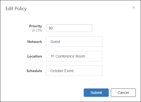 Also, set the priority even if you do not need to register Network, Location, and Schedule policies.