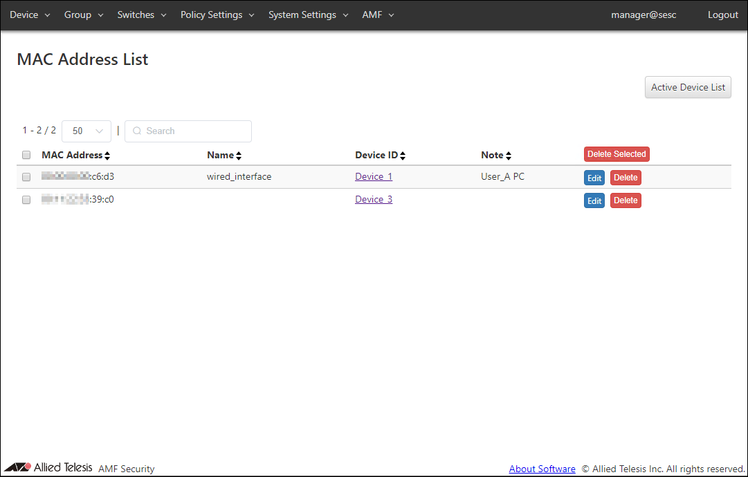 This operation is not for a device which is applied an AMF action. However, the operation is applicable if the same MAC Address is also listed for OpenFlow.