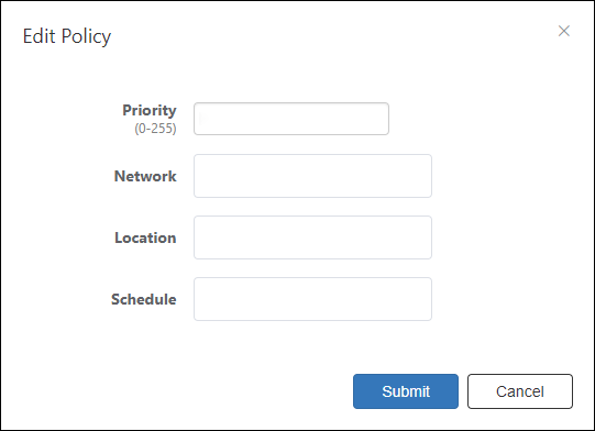 This dialog lets you add a new security policy to the group or update an existing security policy attached to the group.