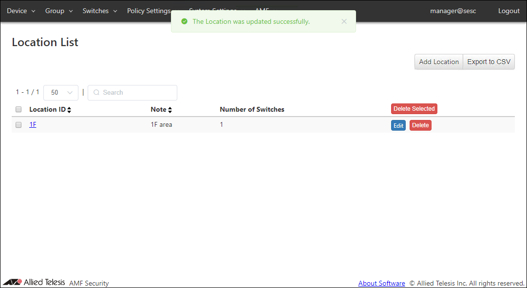 Using locations, you can control the OpenFlow Switches or AMF Members to which a device can connect by location such as an office floor or a meeting room.