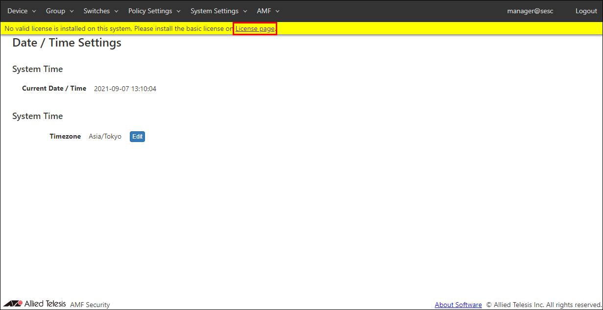 After updating from AMF Security software version 1.8.1 to this version, you can continue to use the applied license key within the usable period.NoteIn this version, the conventional license key cannot be newly applied.