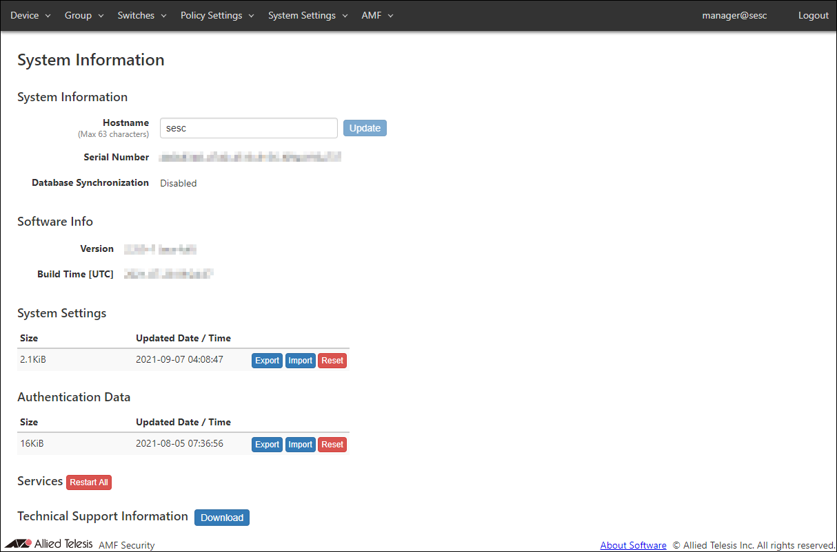 NoteAfter setting the AMF Master, AMF Security accepts both unencrypted and encrypted sessions. You cannot disable one of them.